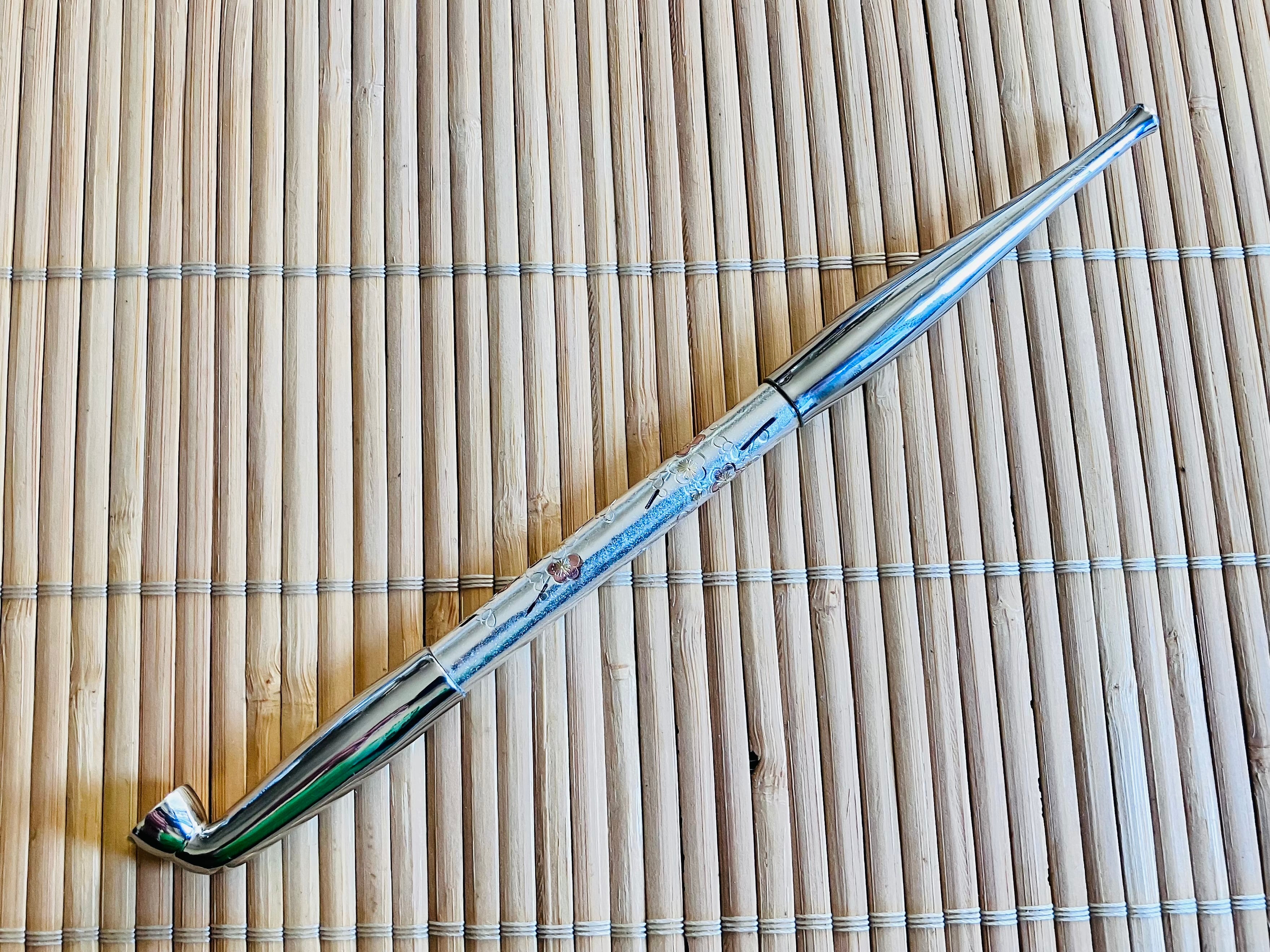 美しい電鋳板を貼り付けた真鍮製のきせる。