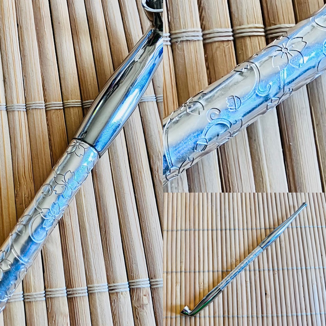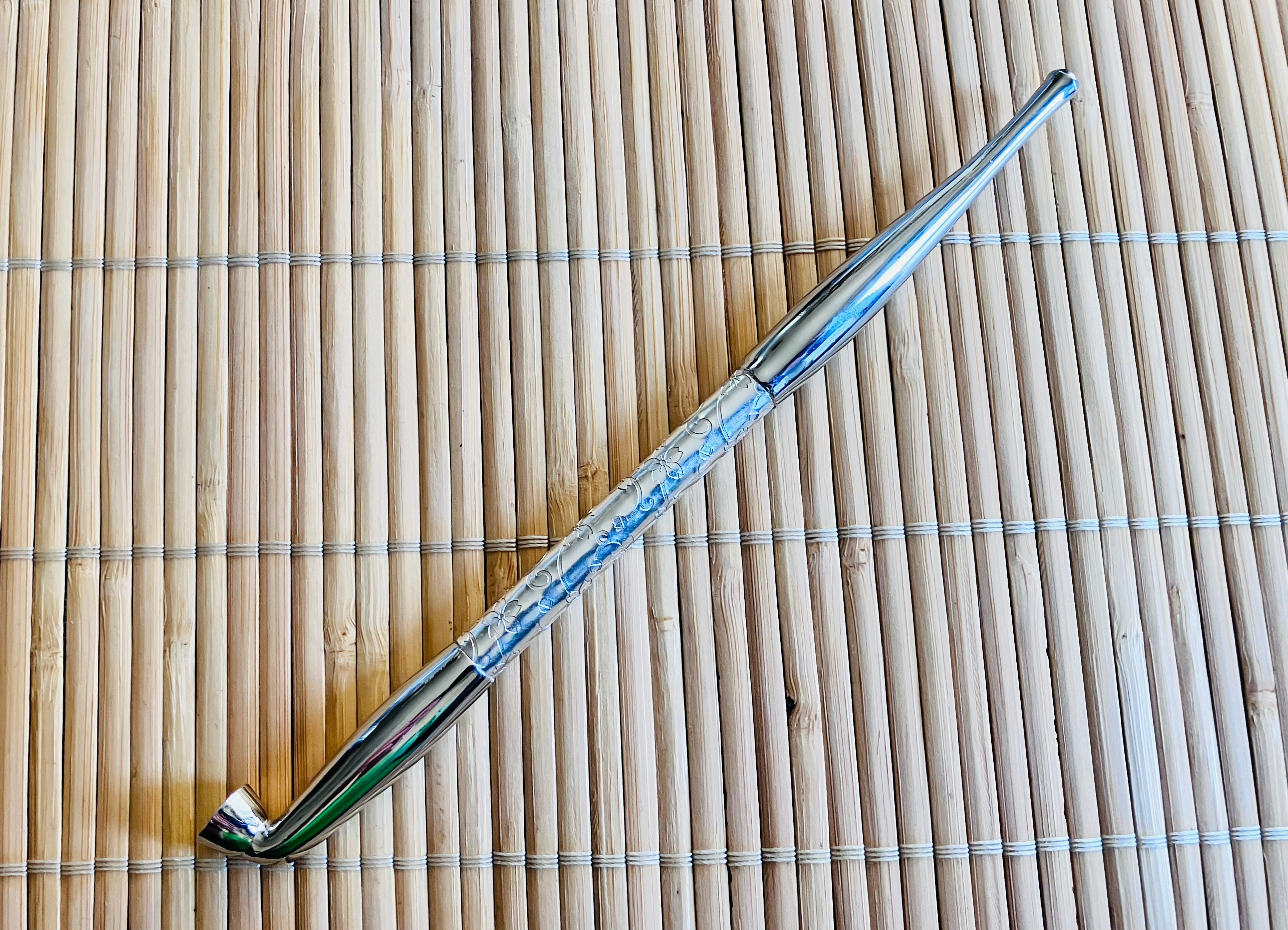 美しい電鋳板を貼り付けた真鍮製のきせる。